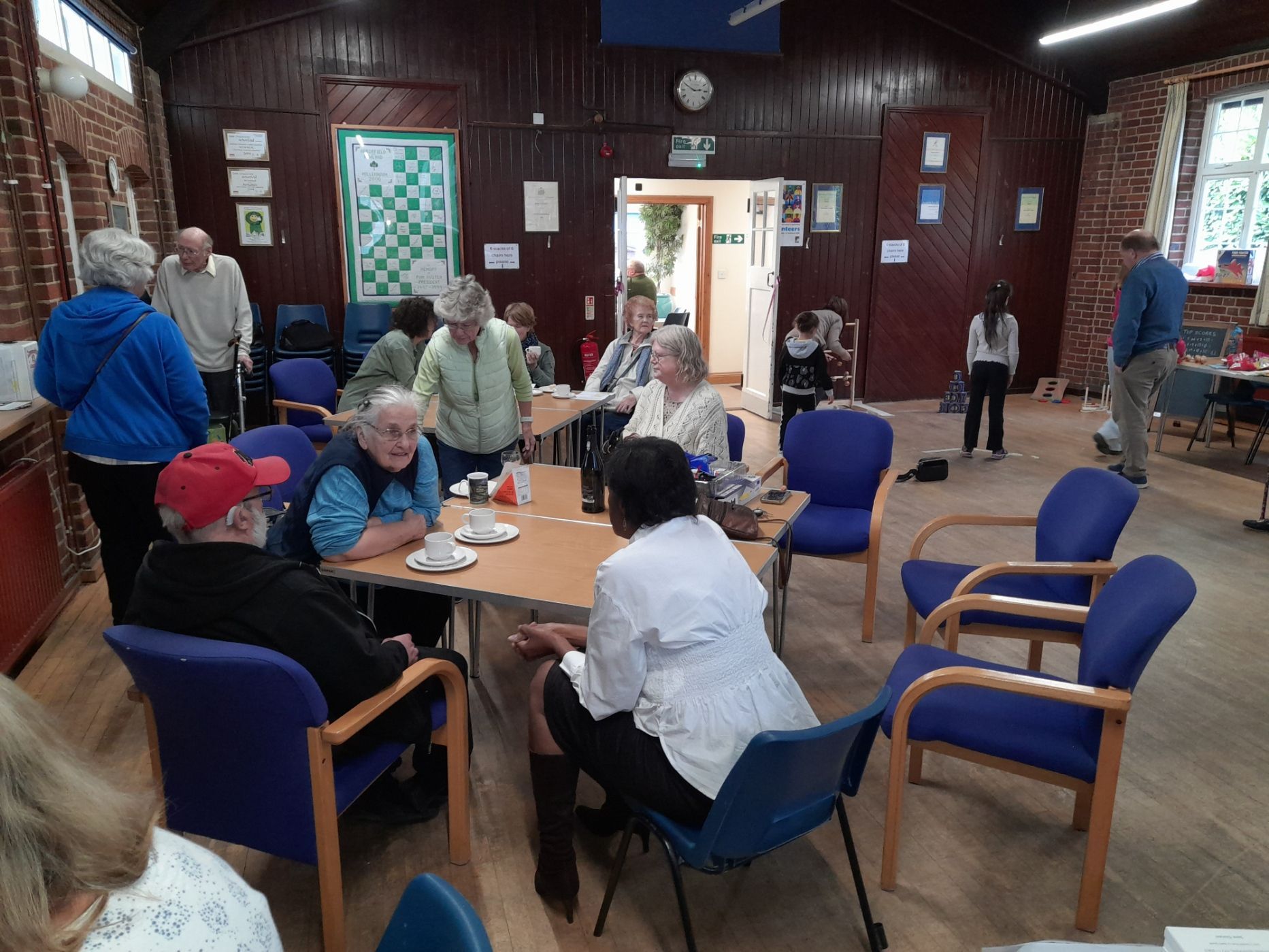 Special thanks to Wokingham M.P. Clive Jones for "cutting the ribbon" and to Kate Meads from CCB for presenting the hall with a plaque, celebrating our working towards becoming a 21st Century hall. Also, Gill for her piano playing, Frank for his prizes, Barrie, Tony and Richard for getting the model railway running, Peter and Rachel for the vintage displays, Dave for running the crafts, Colin for running the games, Lorna and June M for running refreshments and June D for her book signing. Not forgetting, Steve, David and Margaret for help with setting up and delivering people and goods. A real team effort!